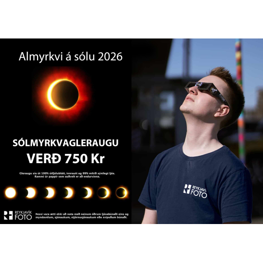 Þann 12. ágúst 2026 verður almyrkvi á sólu sjáanlegur frá Íslandi í fyrsta sinn síðan 1954: Sólmyrkvagleraugu.