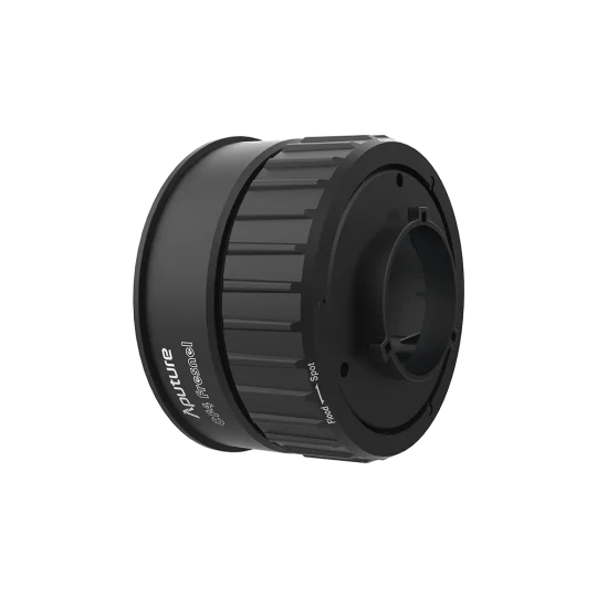 The CF4 Fresnel intensifies the STORM 80c by up to 5.5 times (on STORM 80c at full intensity, 5600K at 1 meter distance equals 36,000 lux). The optics provide an even output at all beam angles, with a smooth center-to-edge falloff.